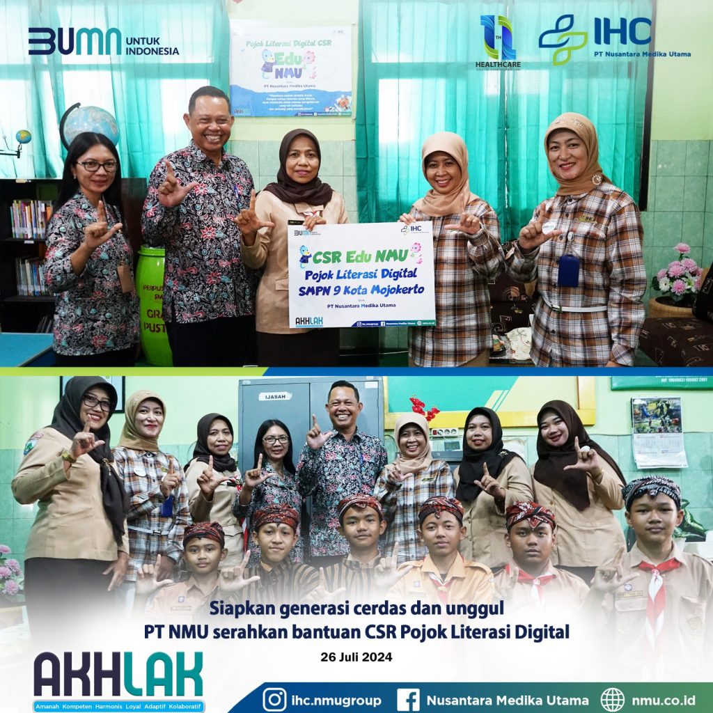 Dalam rangka memperingati Hari Anak Nasional, PT Nusantara Medika Utama (NMU) menyelenggarakan kegiatan CSR berupa “Edu NMU: Pojok Literasi Digital” di SMPN 9 kota Mojokerto, pada Jum’at (26/7/2024). Acara ini dihadiri langsung oleh Direktur PT Nusantara Medika Utama, dr.Titin Amrih Wilujeng, MM, serta perwakilan dari Dinas Pendidikan dan Kebudayaan Kota Mojokerto.