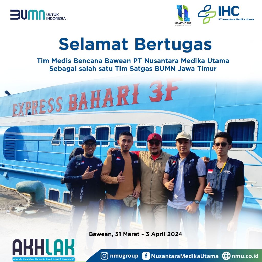 Selamat Bertugas Tim Medis Bencana Bawean PT Nusantara Medika Utama Sebagai salah satu Tim Satgas BUMN Jawa Timur Bawean, 31 Maret - 3 April 2024 “Healthcare Digital Transformation”