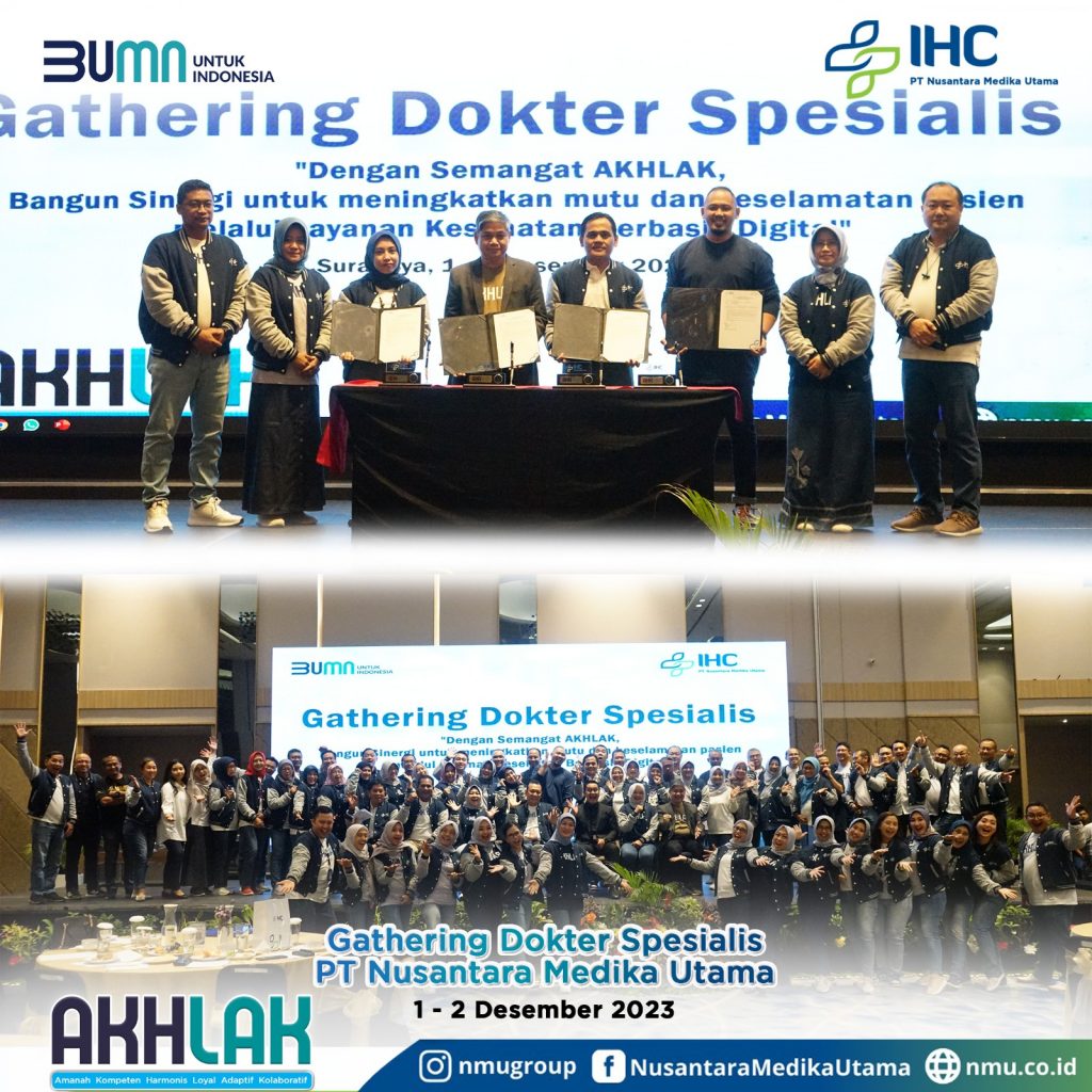 Dalam menghadapi era digitalisasi,serta upaya untuk terus sbustain dalam berkiprah, PT Nusantara Medika Utama menyelenggarakan Gathering Dokter Spesialis pada 1-2 Desember 2023, mengangkat tema " Dengan semangat AKHLAK, bangun Sinergi untuk Meningkatkan Mutu dan Keselamatan Pasien melalui Layanan Kesehatan Berbasis Digital.