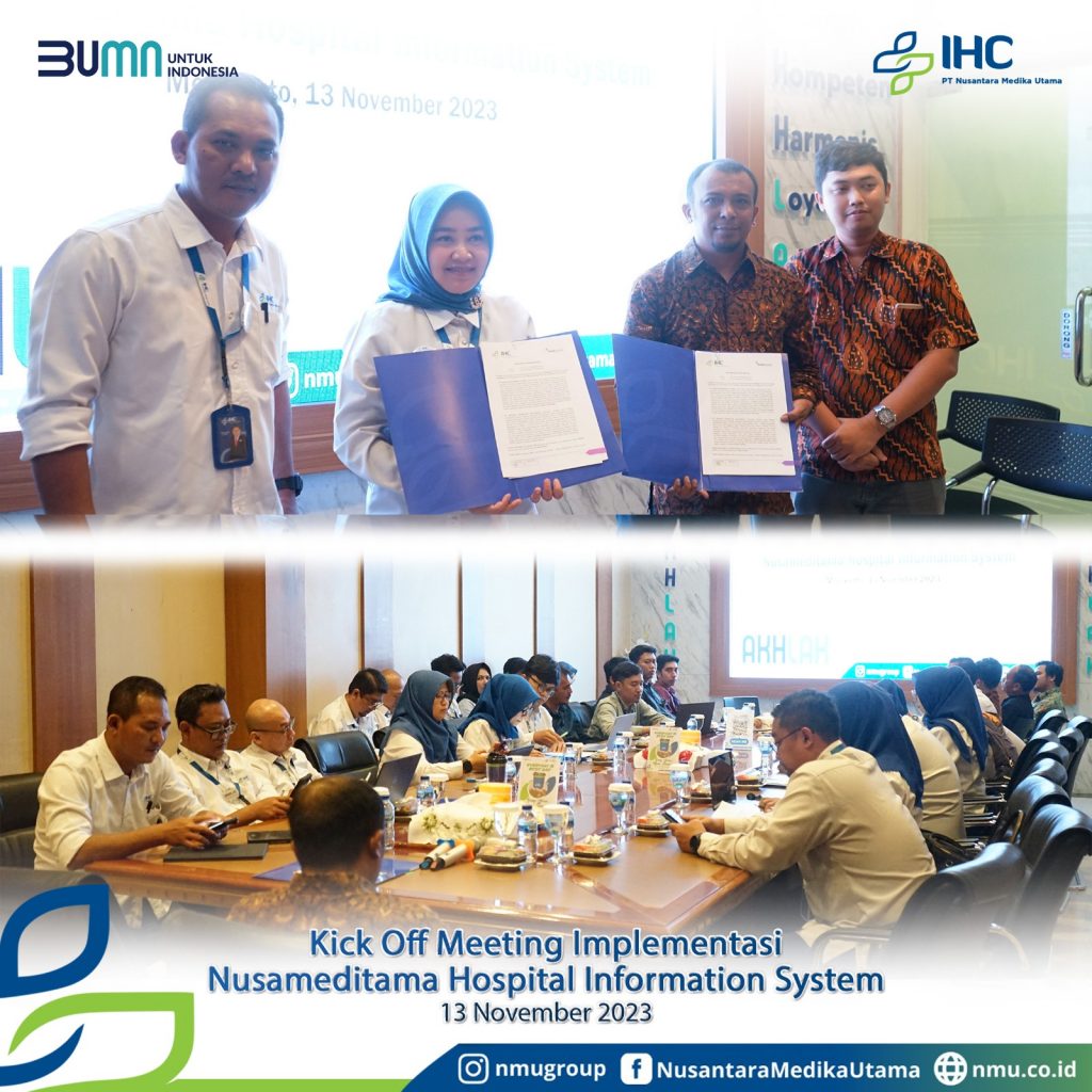 Pada tanggal 13 November 2023, PT Nusantara Medika Utama malangsungkan kick off Meeting Implementasi Nusameditama Hospital Information System sebagai bentuk inovasi digitalisasi layanan kesehatan di lingkungan PT Nusantara Medika Utama.