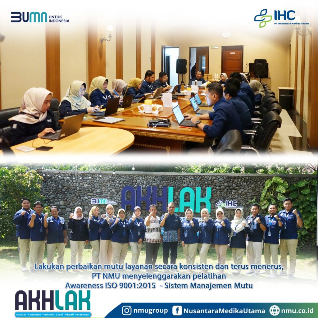 Dalam ekosistem industri kesehatan yang serba VUCA, perlunya membangun sistem manajemen mutu yang terstandar, oleh karenanya PT Nusantara Medika Utama menginisiasi pelatihan Awareness ISO 9001:2015 yang diselenggarakan secara hybrid selama 2 hari kedepan.