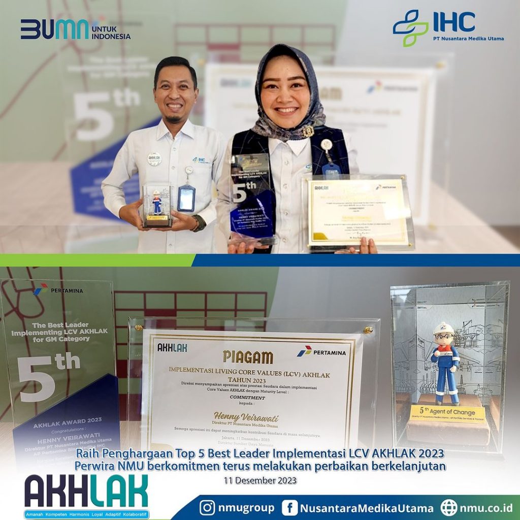 Puji Syukur atas anugerah sebagai 5 besar Best Leader level GM/setara GM di Pertamina Group dalam implementasi LCV AKHLAK tahun 2023 yang digelar pada perayaaan HUT ke-66 Pertamina (11/12/2023) di Ballroom Grha Pertamina. Suatu pencapaian dan prestasi yang luar biasa bagi NMU dapat berkompetisi dengan perusahaan besar Pertamina Group dalam assessment implementasi budaya LCV AKHLAK.