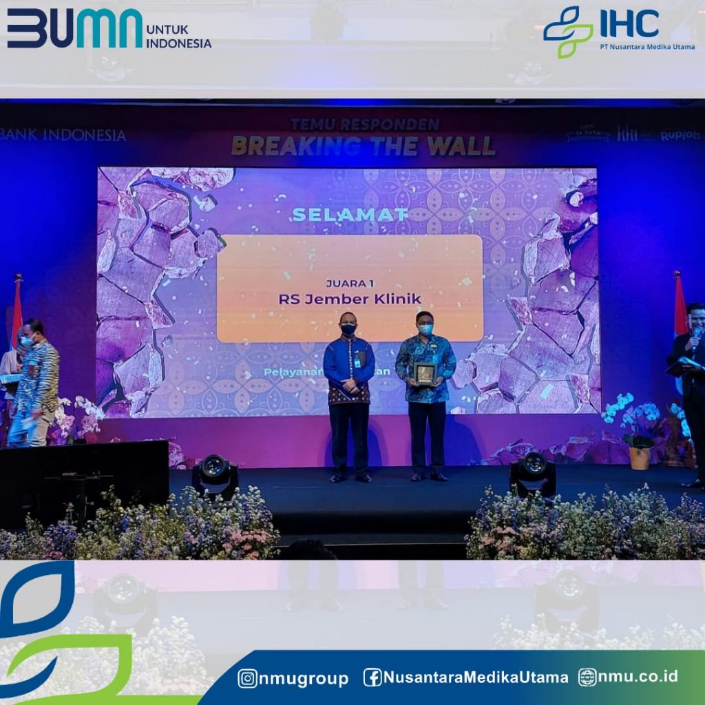 RS Perkebunan Jember Klinik sebagai salah satu unit usaha PT Nusantara Medika Utama meraih penghargaan sebagai Pelayanan Kesehatan Terbaik dalam event Bank Indonesia Jember Award 2021 yang di helat pada Senin 15 November 2021.