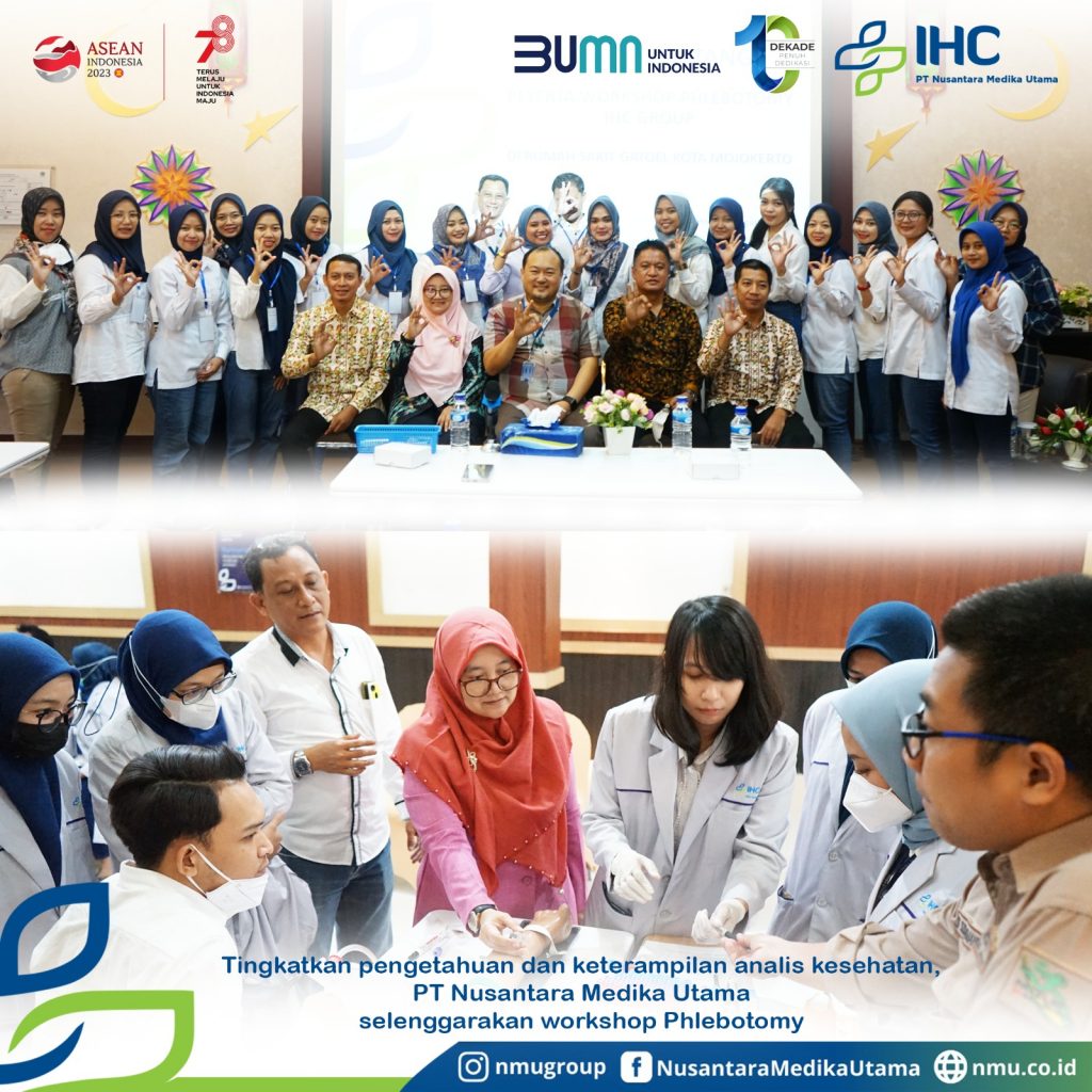 Jumat-Sabtu, 25-26 Agustus 2023, di Grha Vanda RS Gatoel, PT Nusantara Medika Utama telah dilaksanakan Workshop Phlebotomy. Acara ini diikuti oleh 45 peserta yang terdiri dari tenaga analis kesehatan dari unit rumah sakit di bawah naungan Pertamedika IHC.