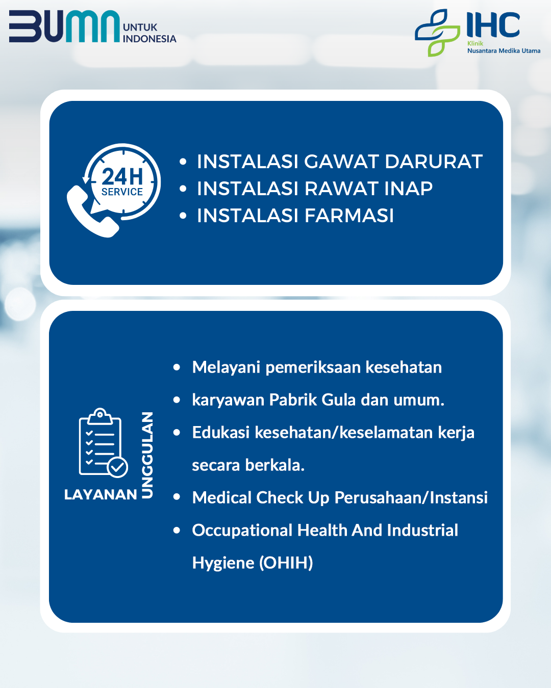 Awal berdiri sebagai klinik perusahaan untuk melayani kesehatan karyawan dan batih pabrik gula milik PTPN X Mulai Tahun 2013 membuka layanan kesehatan untuk masyarakat umum dan pada tahun 2014 telah melayani pasien BPJS Berlokasi di beberapa kota di Jawa Timur. Terdapat 6 Klinik Pratama Nusa Medika Rawat Inap dan 9 Klinik Pratama Nusa Medika Rawat Jalan. Terdaftar sebagai Perusahaan Jasa Keselamatan dan Kesehatan Kerja (PJK3)